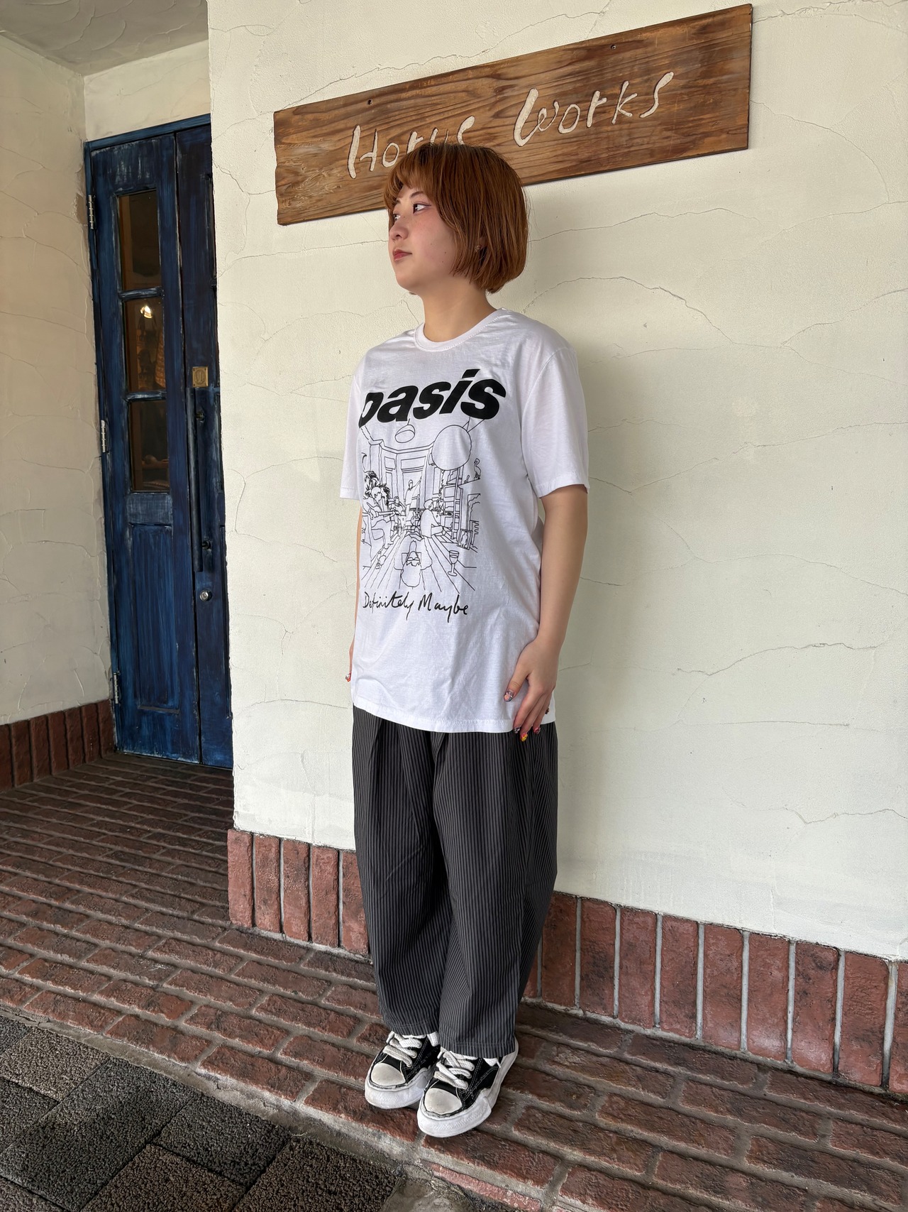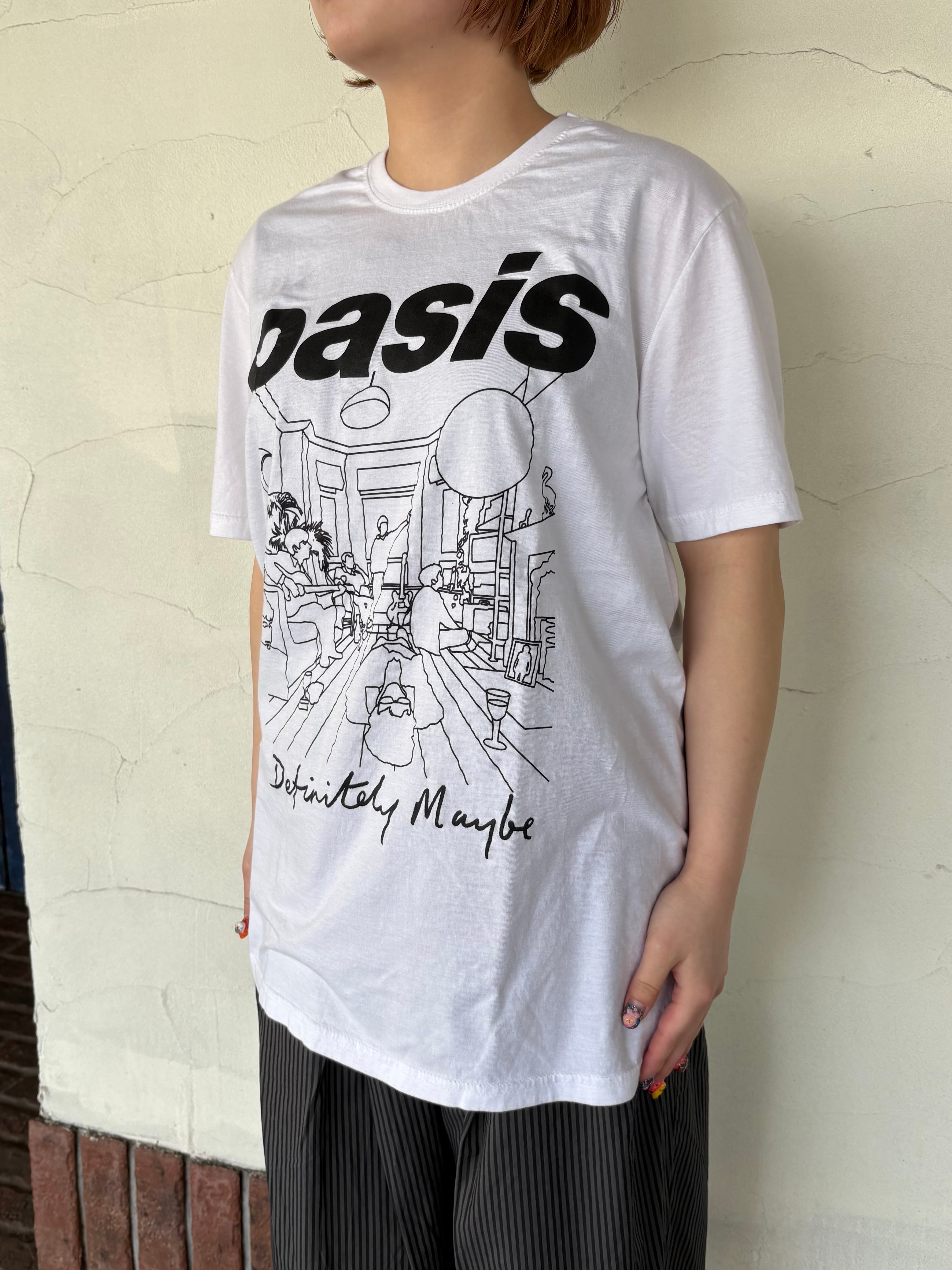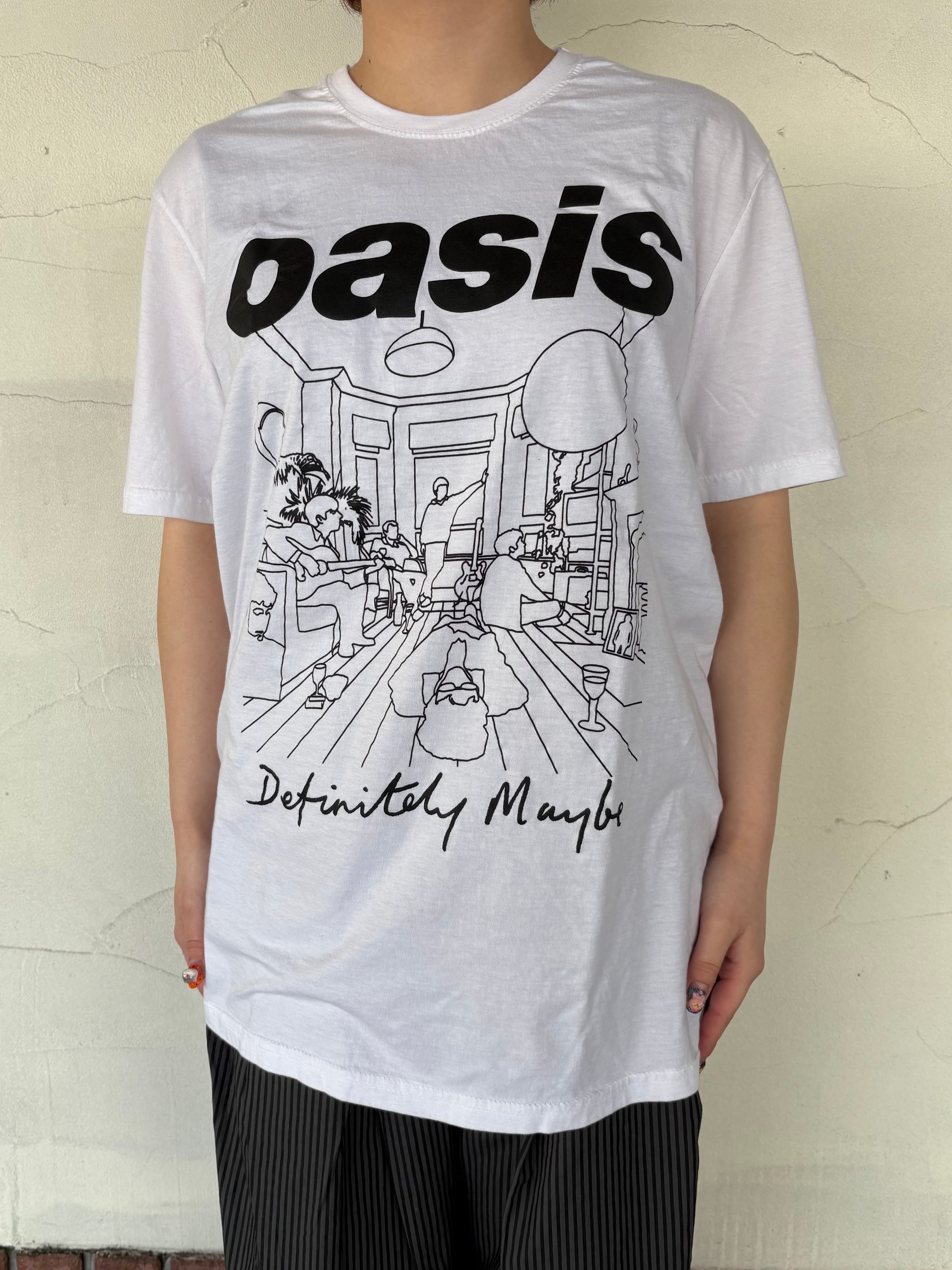 オアシスのデビュー・アルバムである『Definitely Maybe』をハンドドローイング調で描いたグラフィックをプリント。