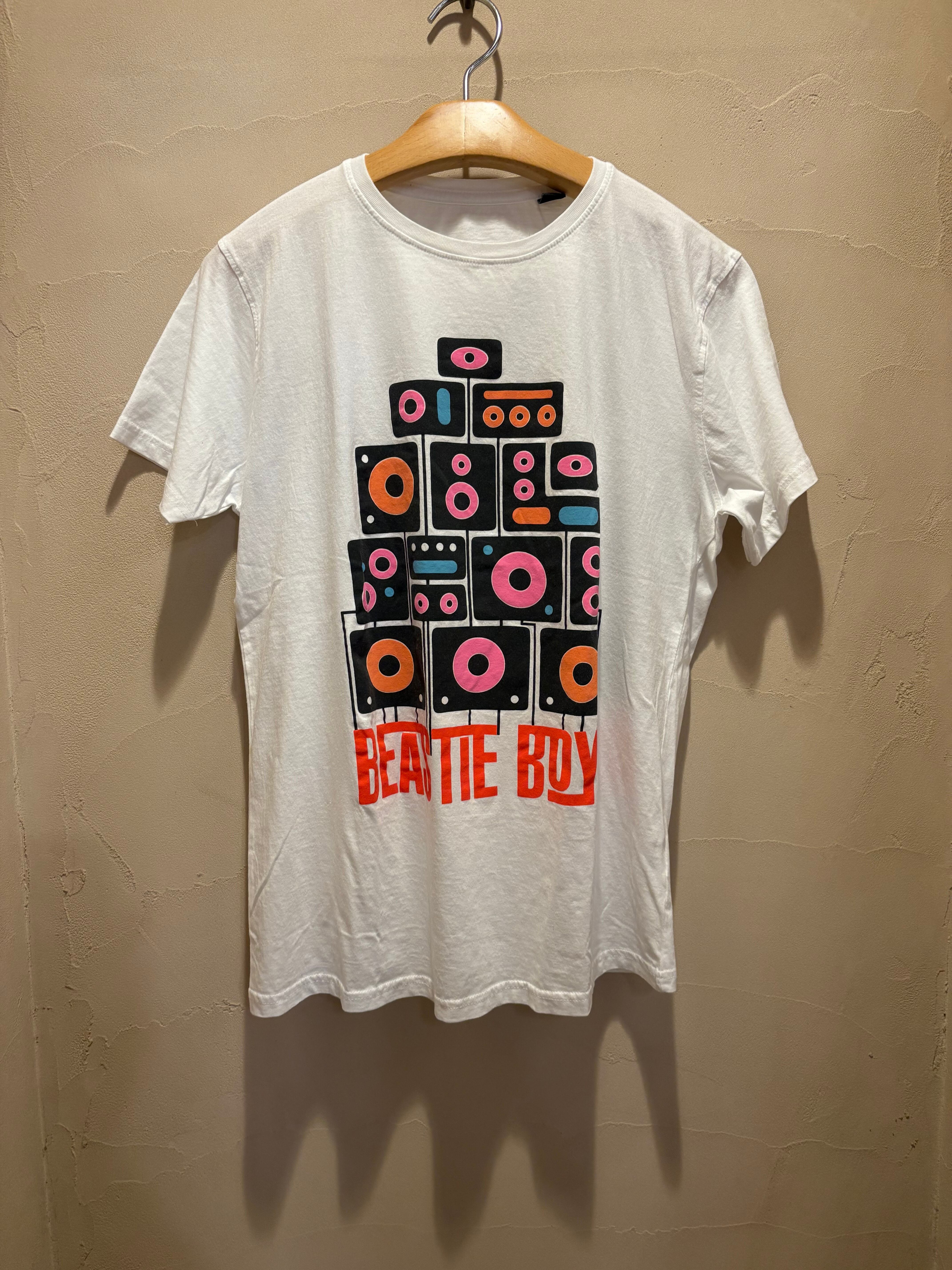 1978年に結成されたニューヨーク発のアメリカのHIP HOPグループ「BEASTIE BOYS」の95年に行われた「Quadraphonic Stereo Tour」の際のツアーTシャツ柄、マイクミルズのデザインセンスが光る一着。