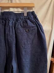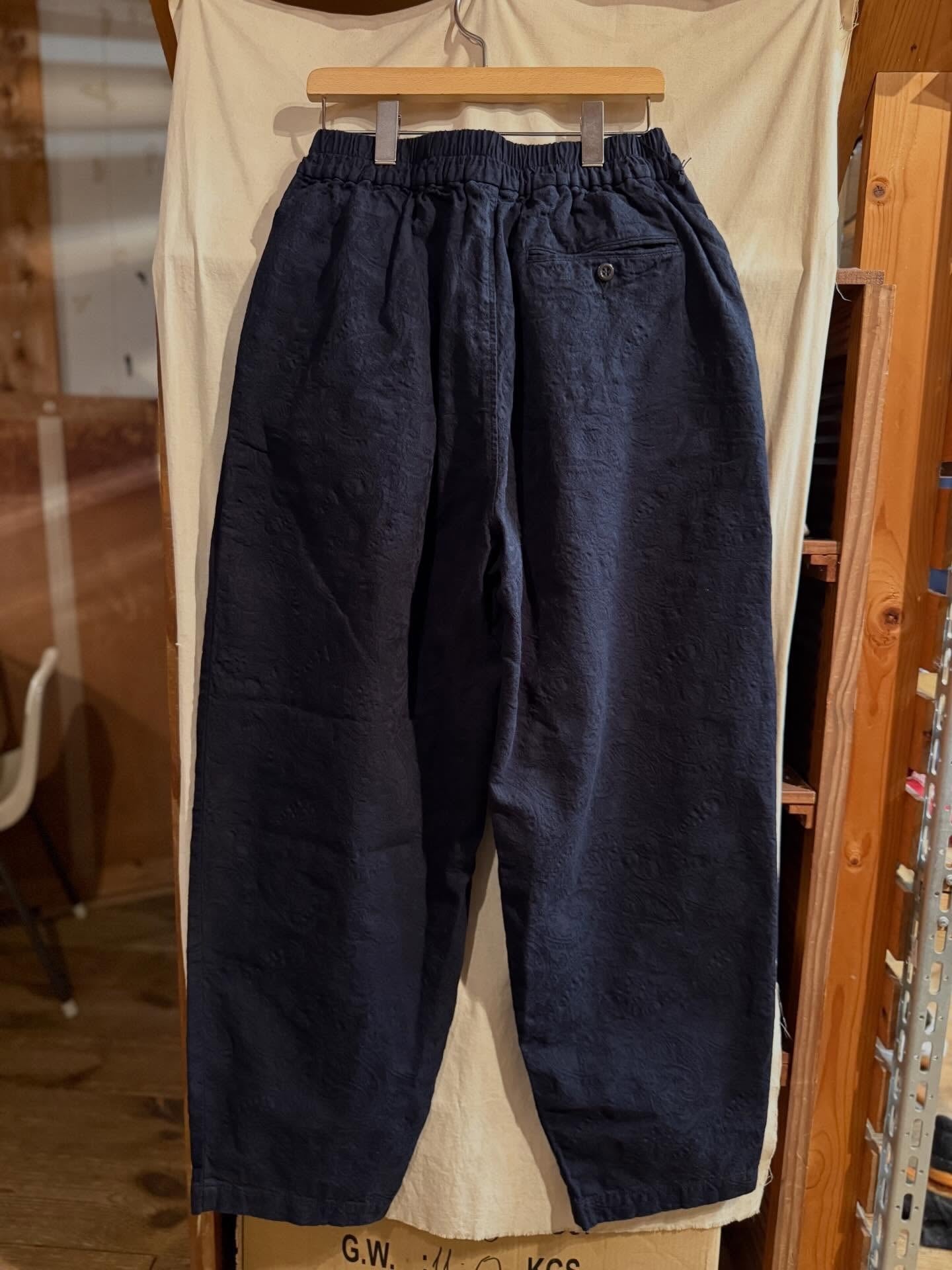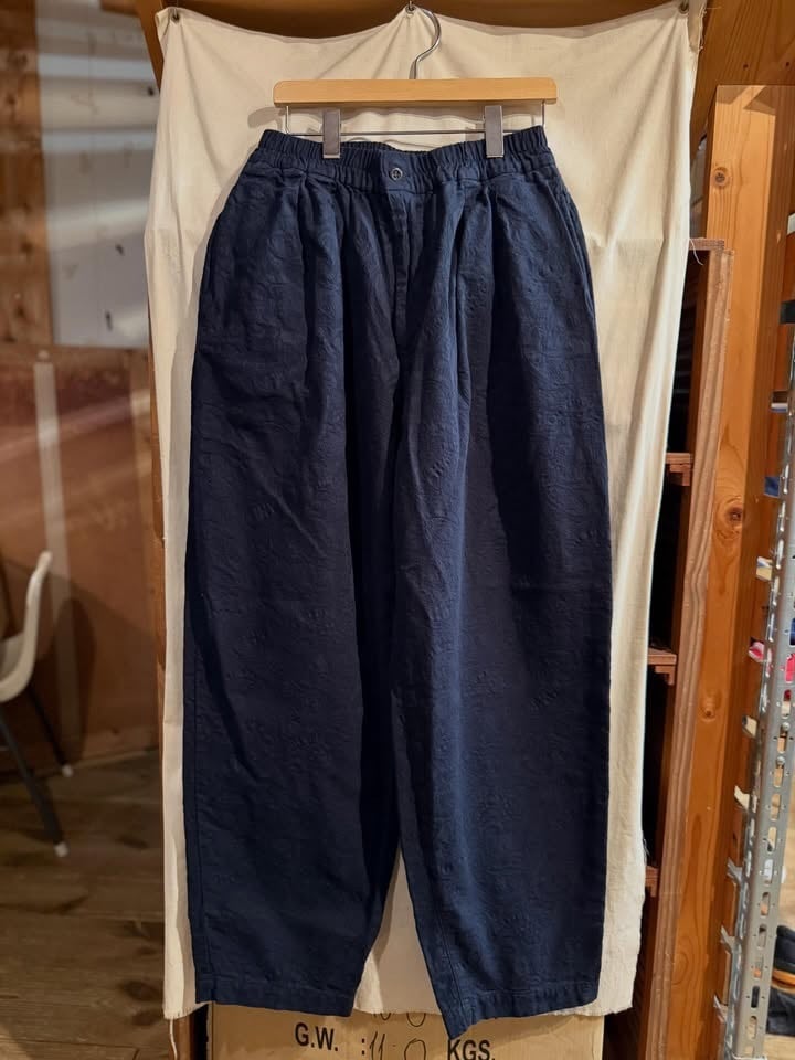 一際目を引く柄素材と立体的なフォルムが調和した、大人のリラックスパンツです。
