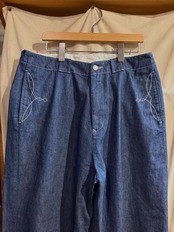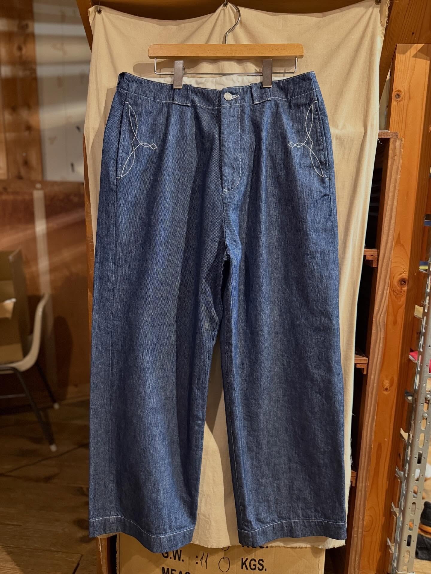 ズドンと落ちる無骨で男らしいワイドシルエットを採用しており、ポケット口に施したウエスタン調の刺繍で【Nasngwam】らしさを表現。