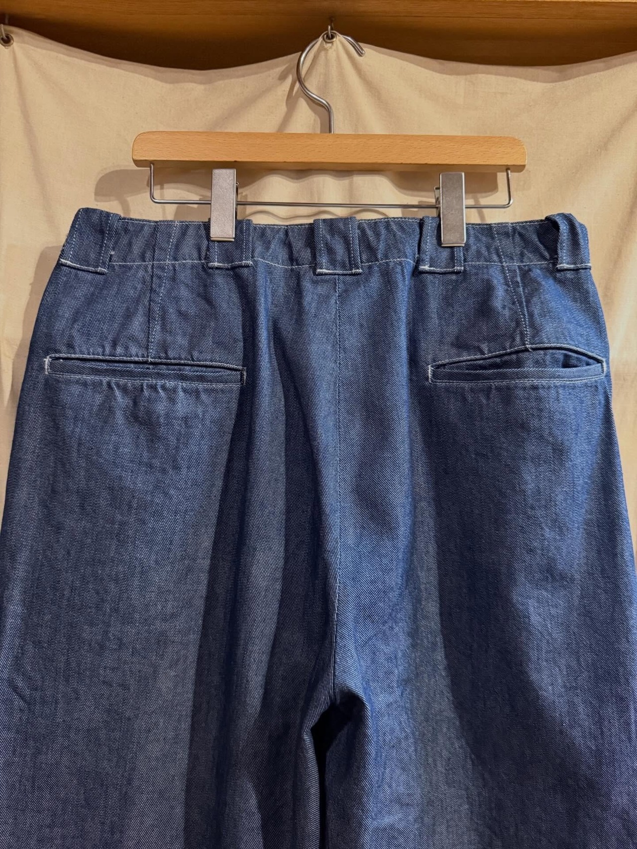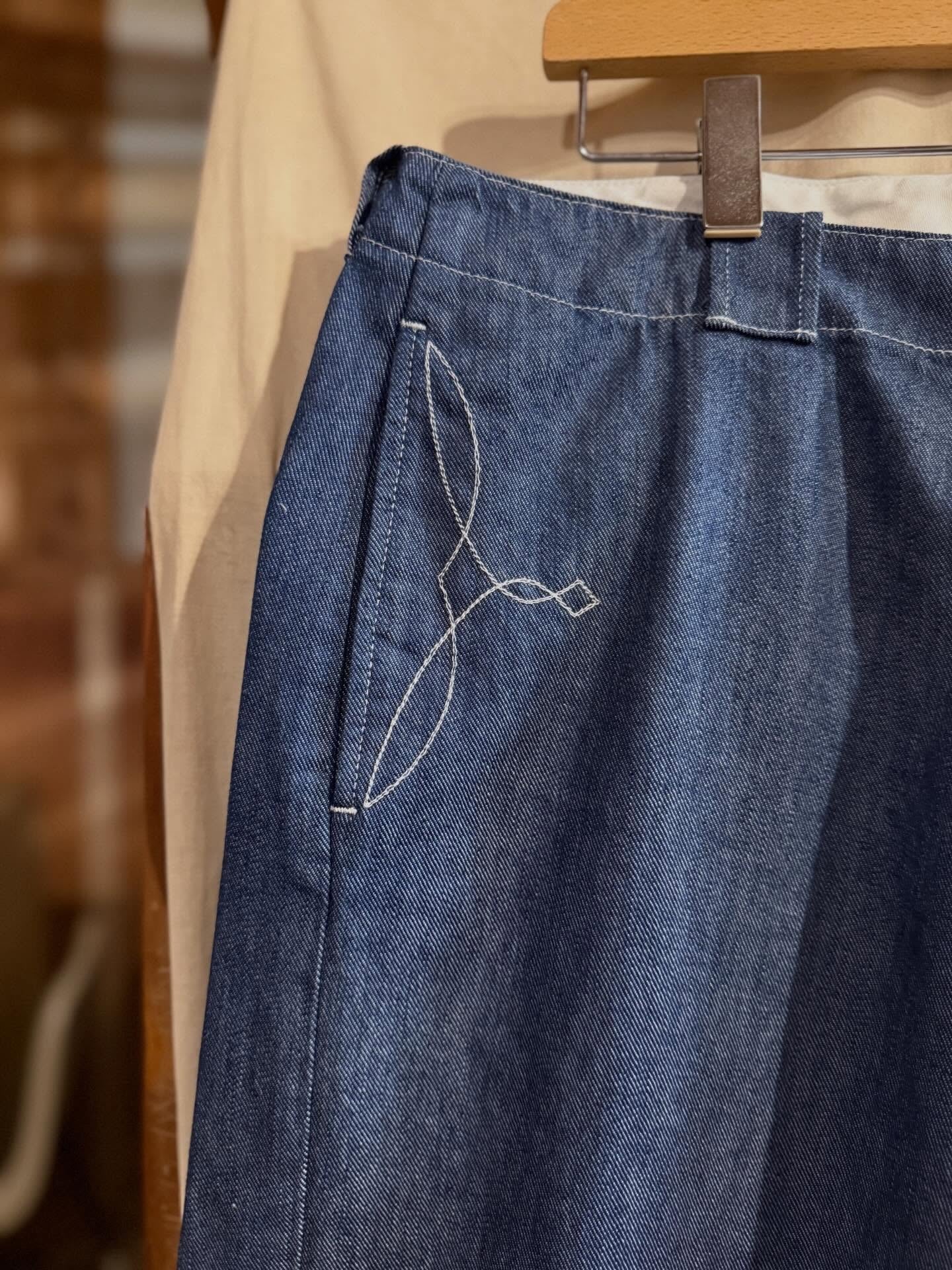日常の動きでさり気なく見える刺繍がとても良く、薄手でハリの無い柔らかなデニム生地は春、夏、秋と長いシーズン楽しめるのも魅力です。