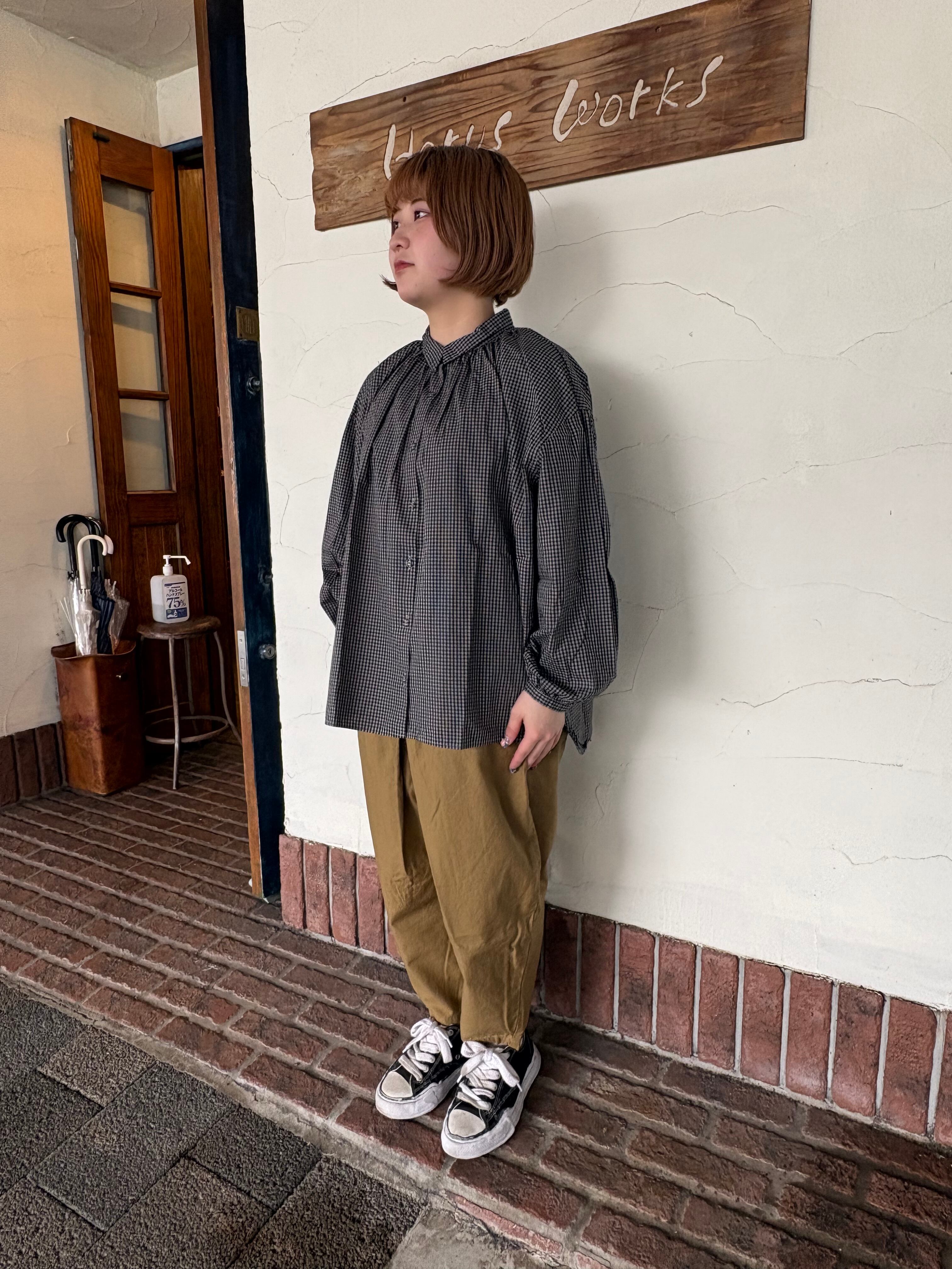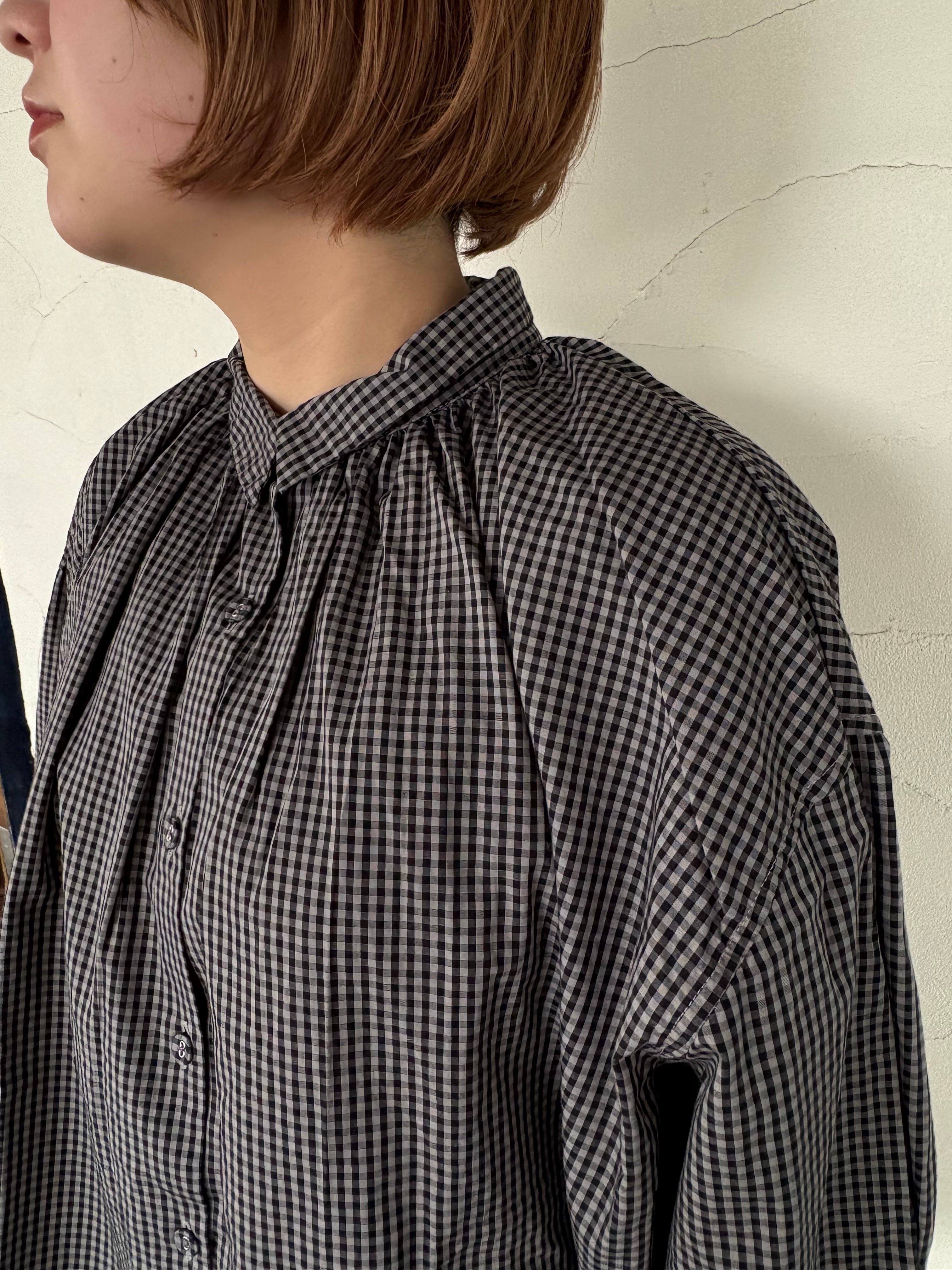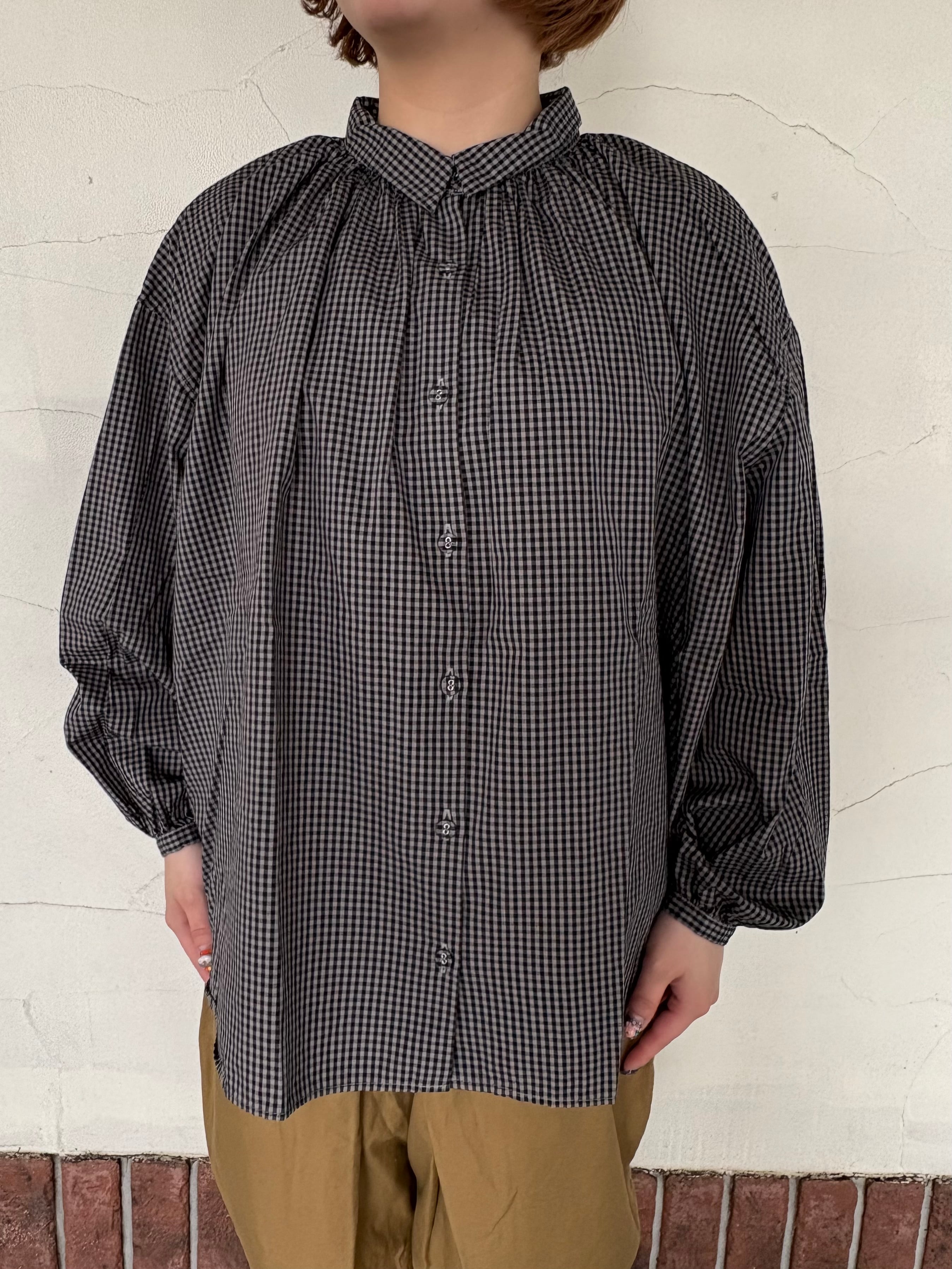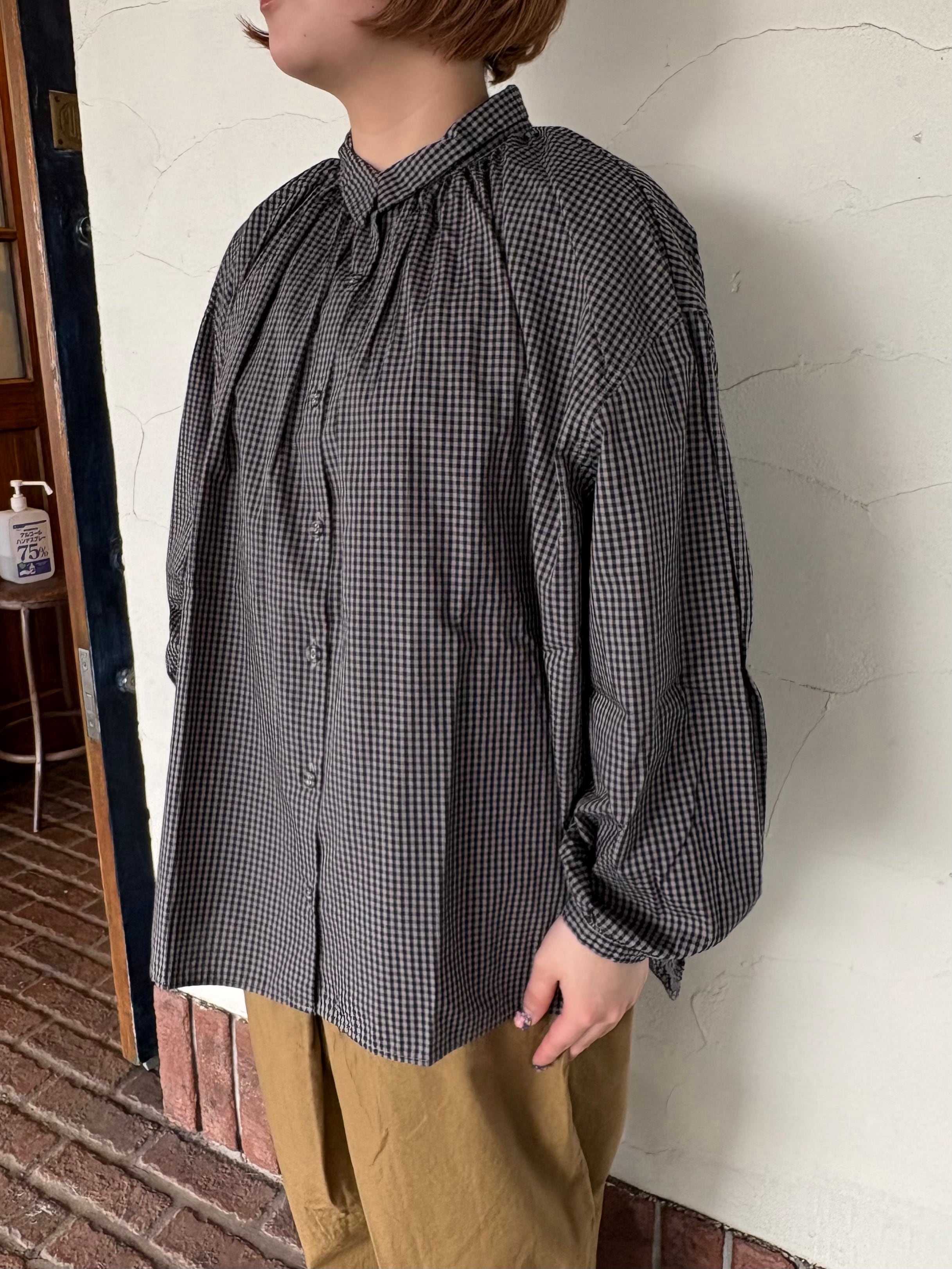 [SETTEN] “ブロードギンガム製品染めギャザーカラーブラウス”