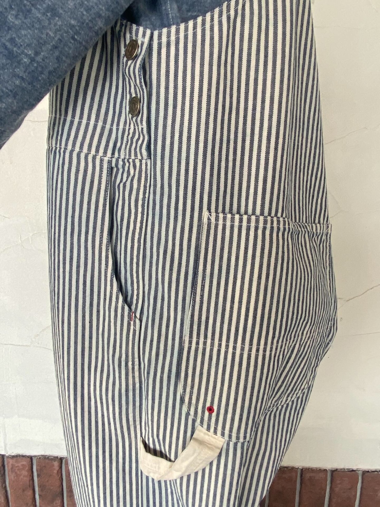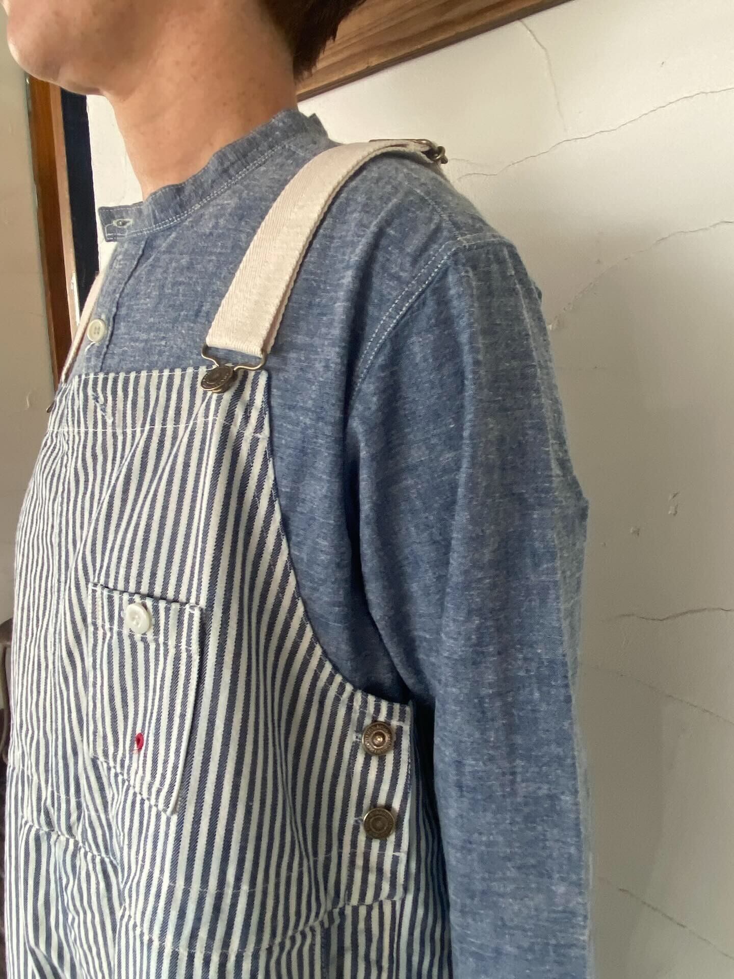 ヒッコリーはストライプ柄に織られたデニムですが、このアイテムは生地の裏側を表にしてストライプのコントラストを抑えています
