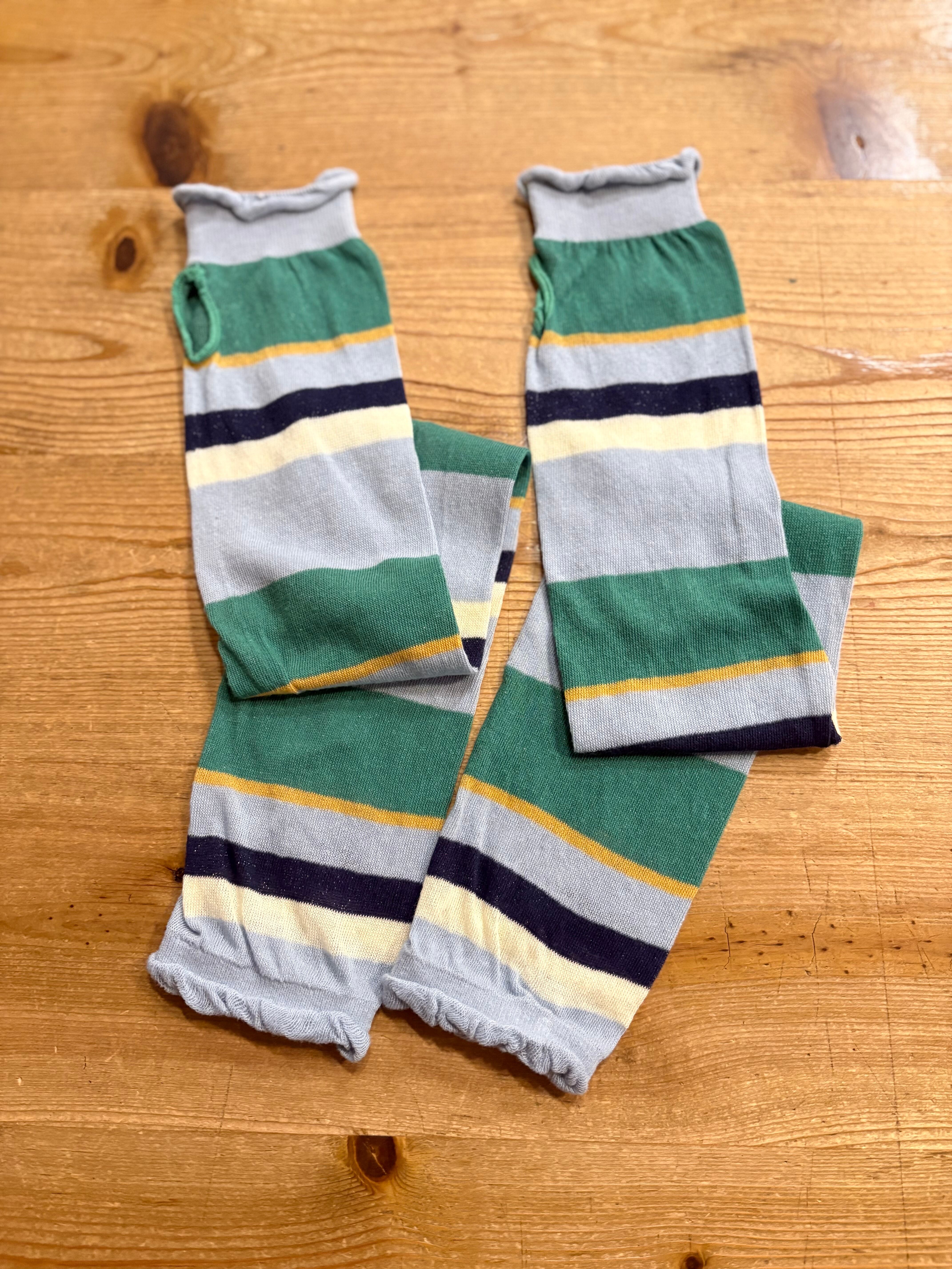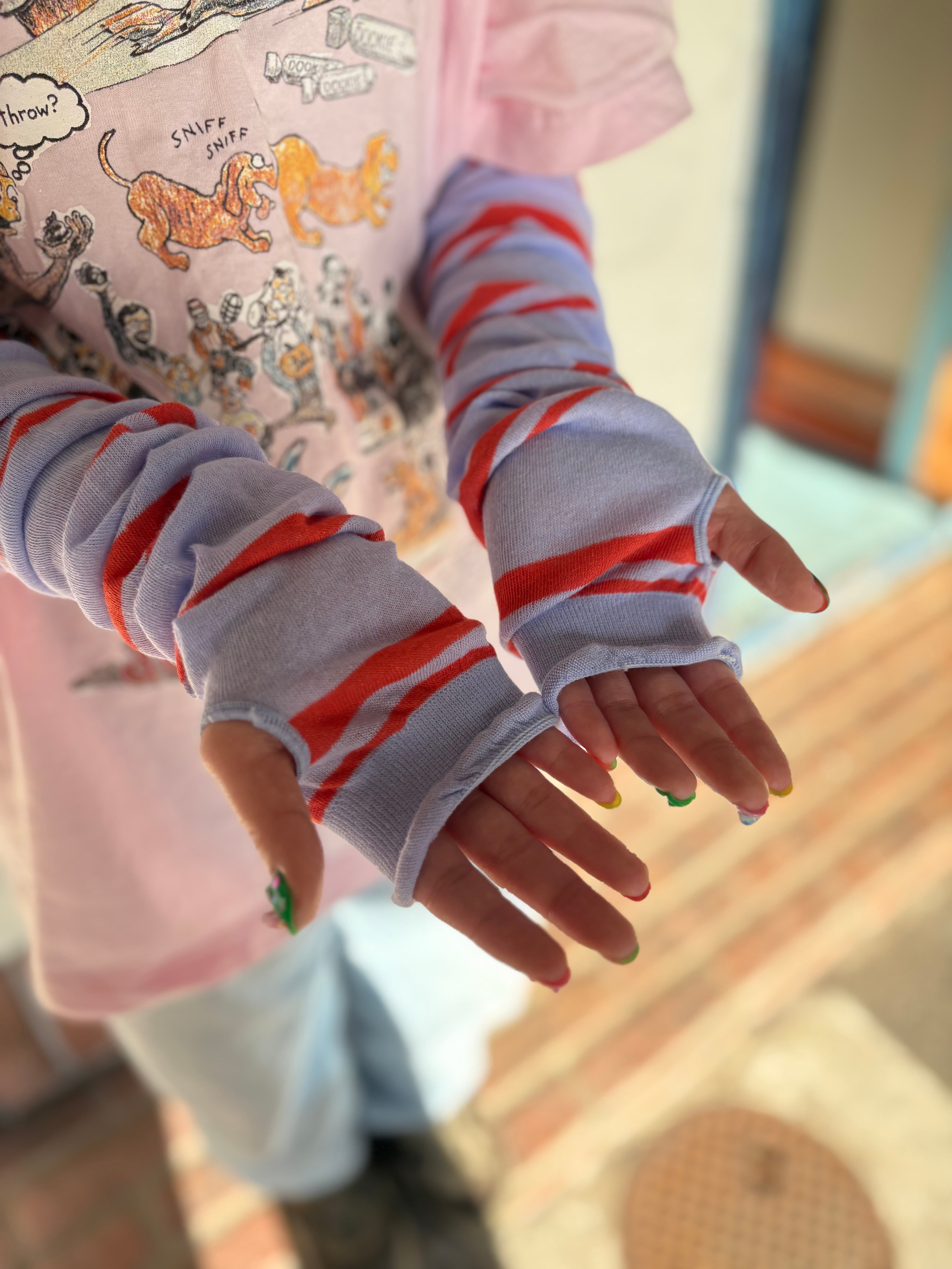 古着のボーダーロンTみたいな、ちょっとヤレた雰囲気が遊びあり。ゆるっと抜け感のあるマルチなボーダーアームカバー。