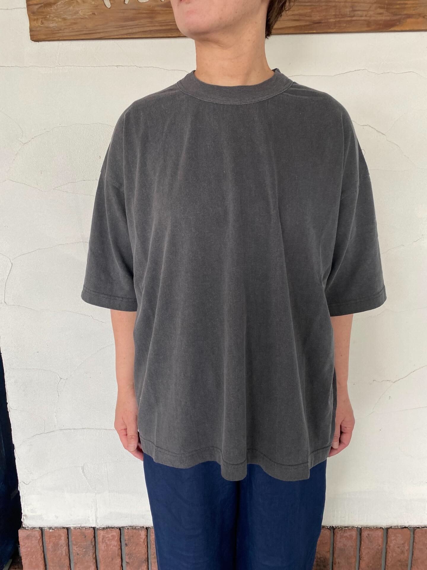 [prit] “40/1引き揃え天竺ヴィンテージ加工5分袖クルーネックワイドTシャツ”