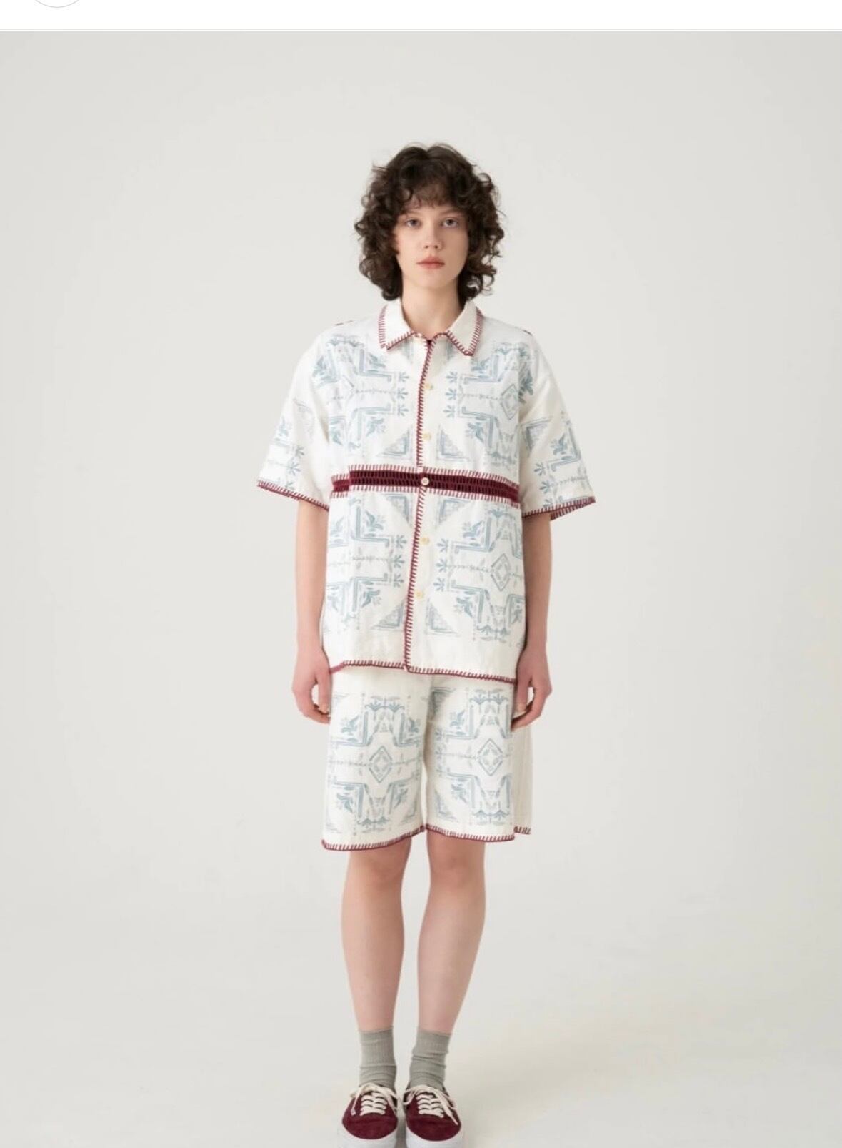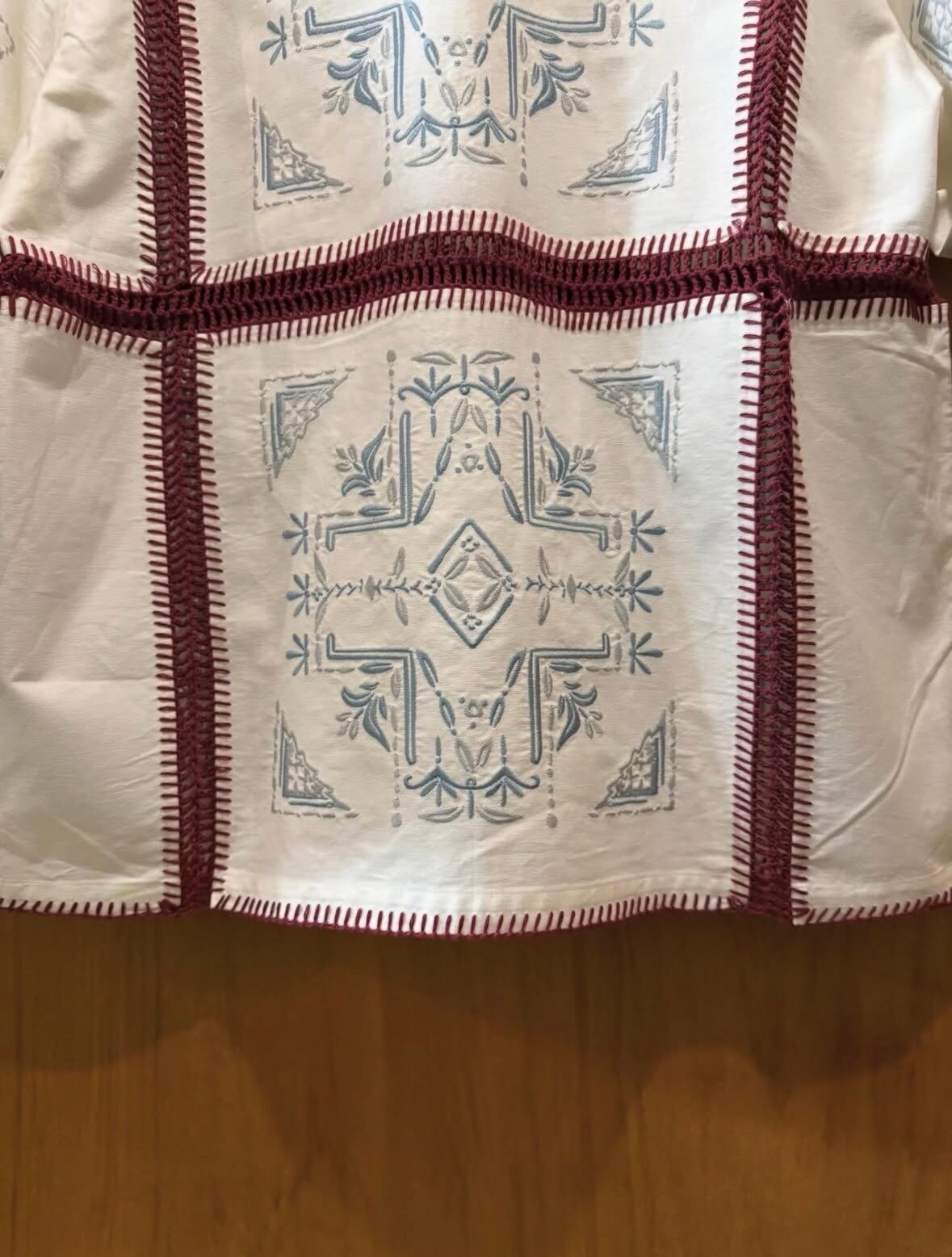 全体には 非常に細かく繊細な刺繍を施し、カジュアルな半袖シャツでありながら、クラフト感と品の良さを併せ持つ仕上がり。