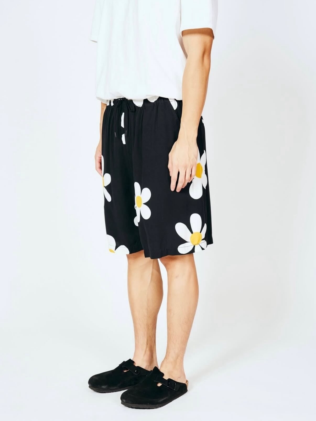 同素材のレーヨンシャツとセットアップでの着用も可能で、リゾートスタイル、夏のワンマイルウェア、タウンユースまで幅広く使えるショートパンツです。
