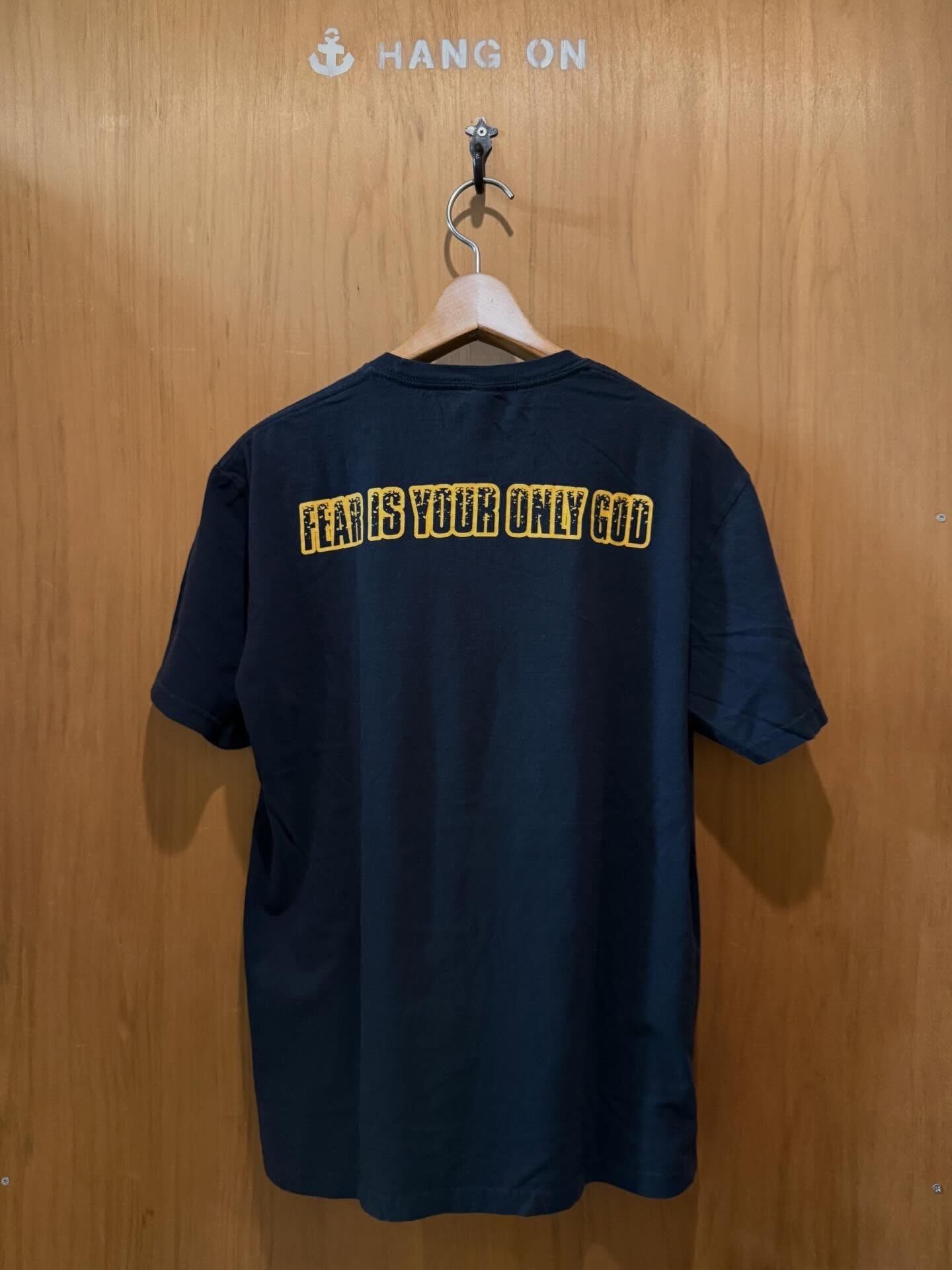 フロントにはアルバムアートワーク、バックには "FEAR IS YOUR ONLY GOD" (恐怖だけがお前の神だ) のプリント。
