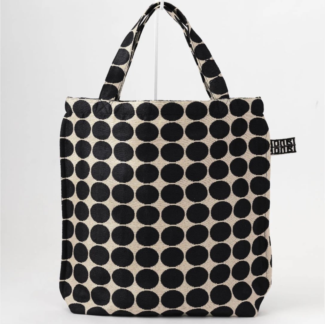 定番の縦型トートは、使いやすく容量もあるので、ドット柄はシックにもカジュアルにもお使い頂けます。