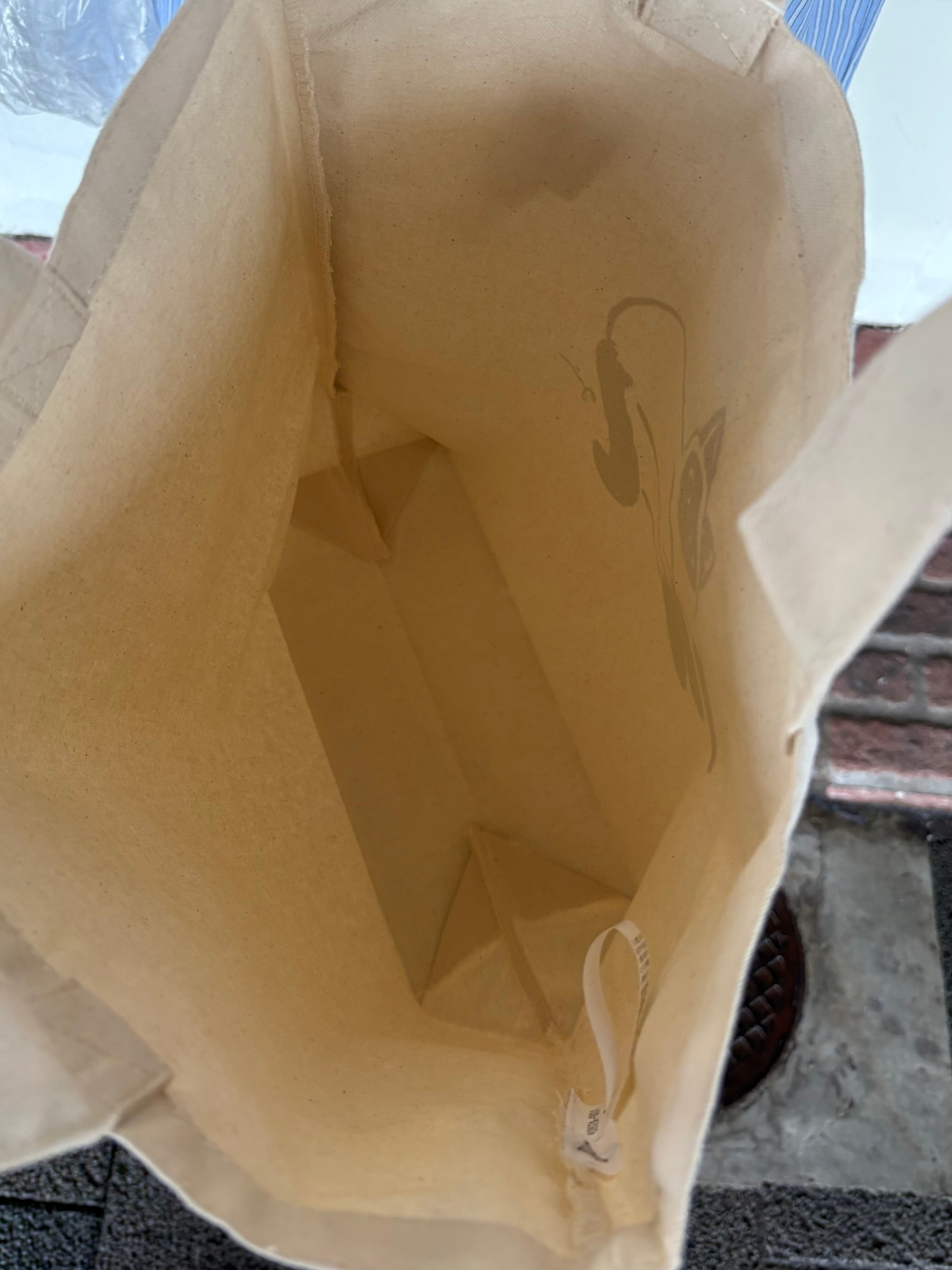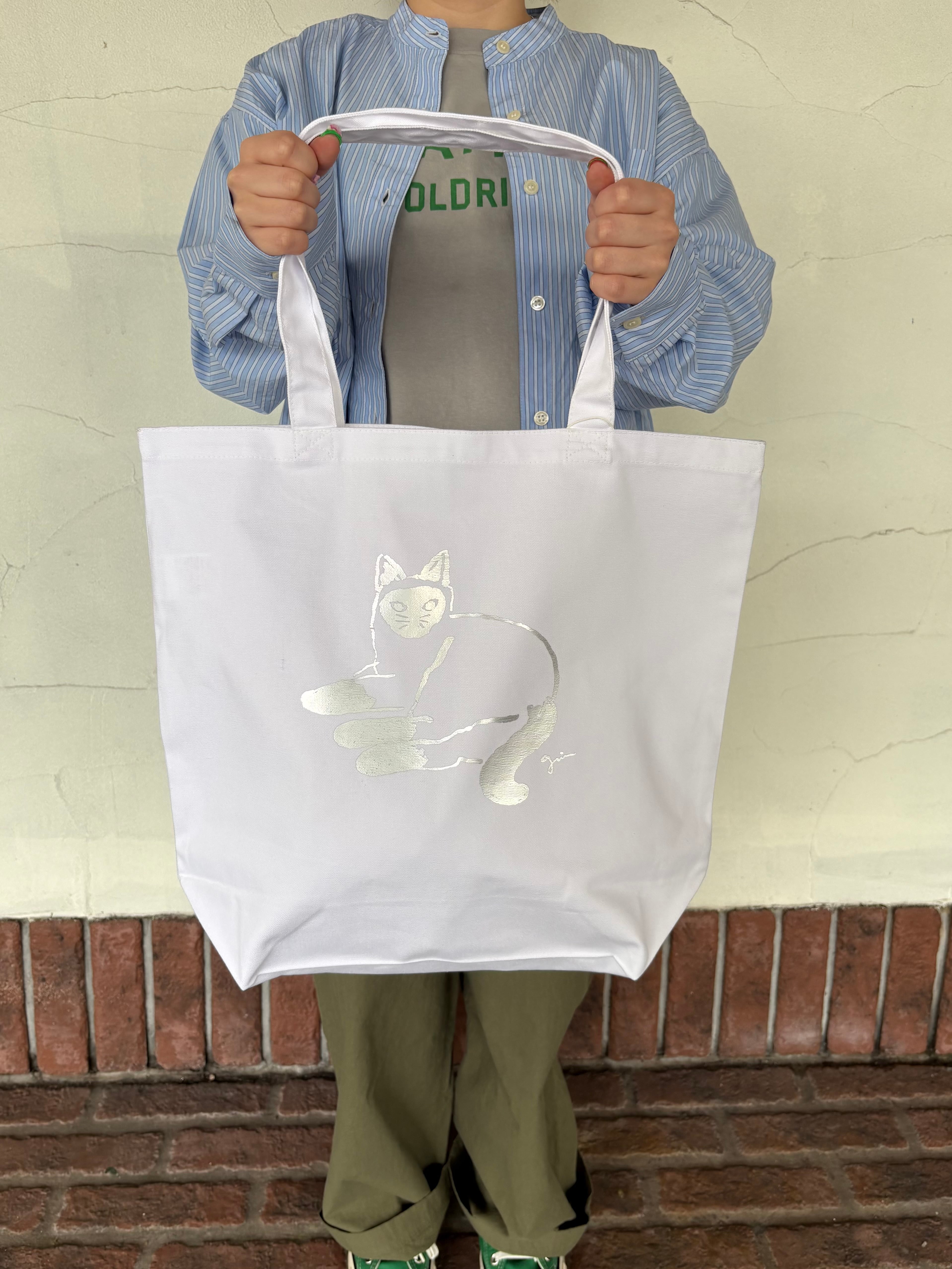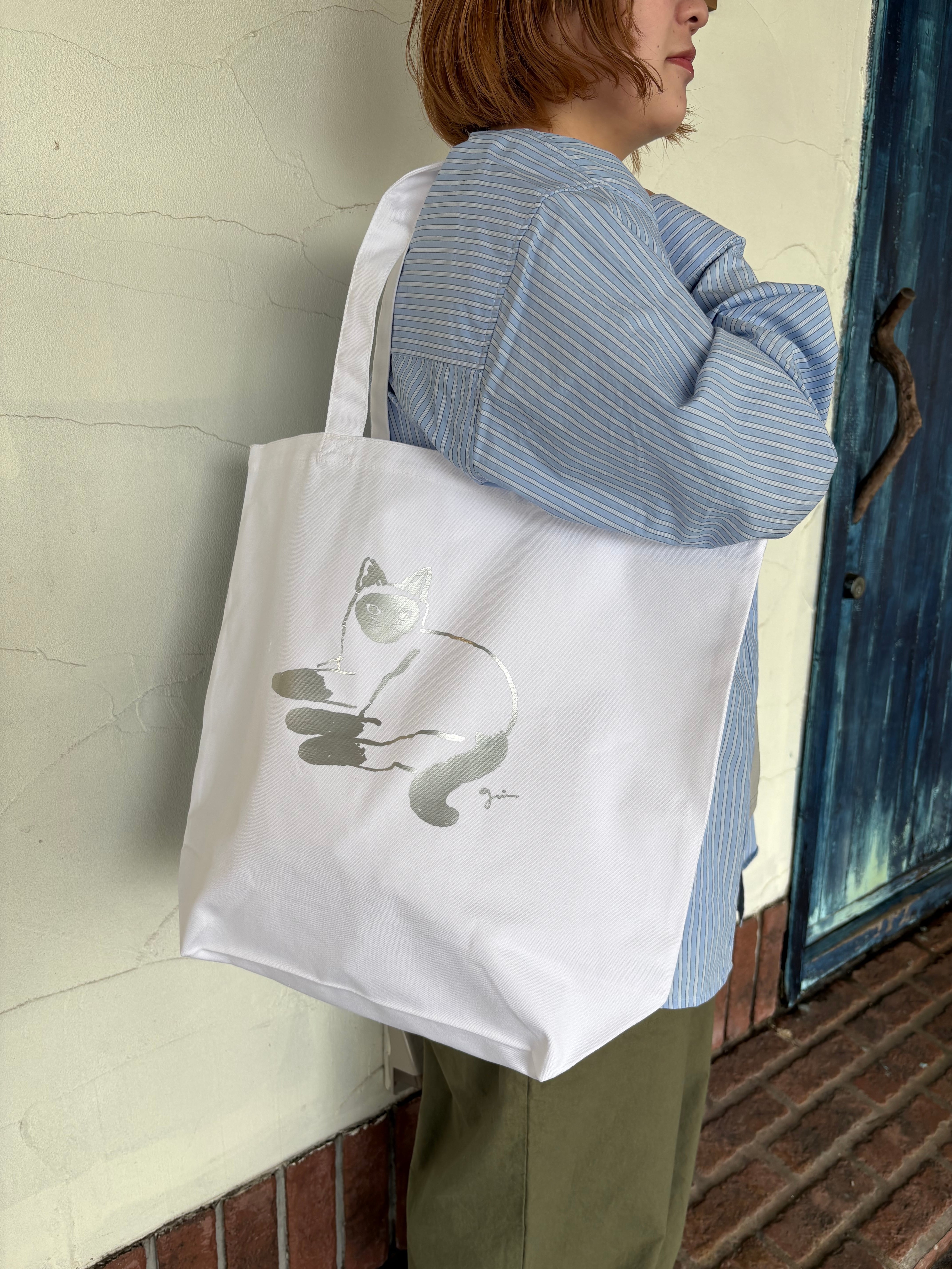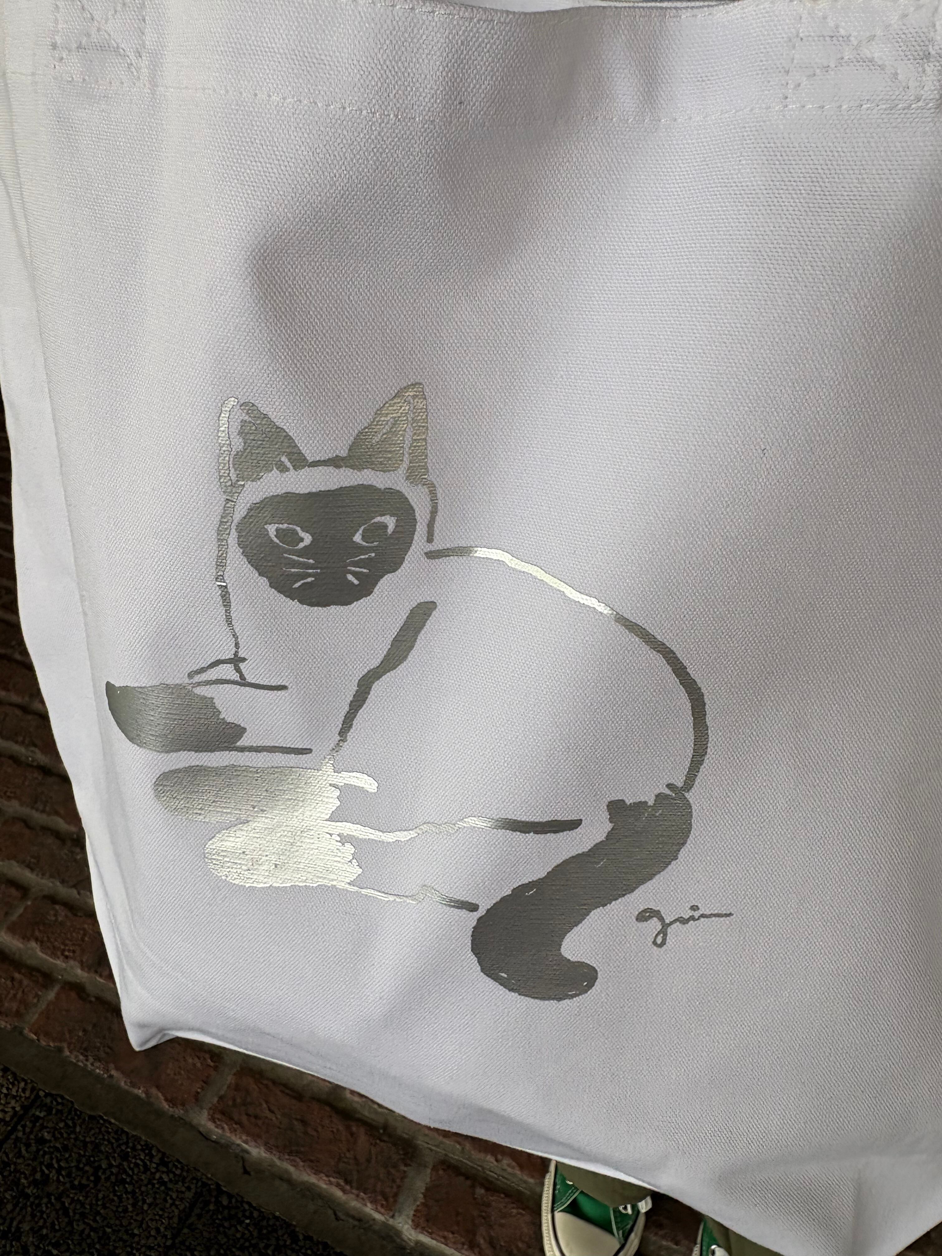 愛らしいシャムネコの表情が目を引く、grinのプリントバッグです。
