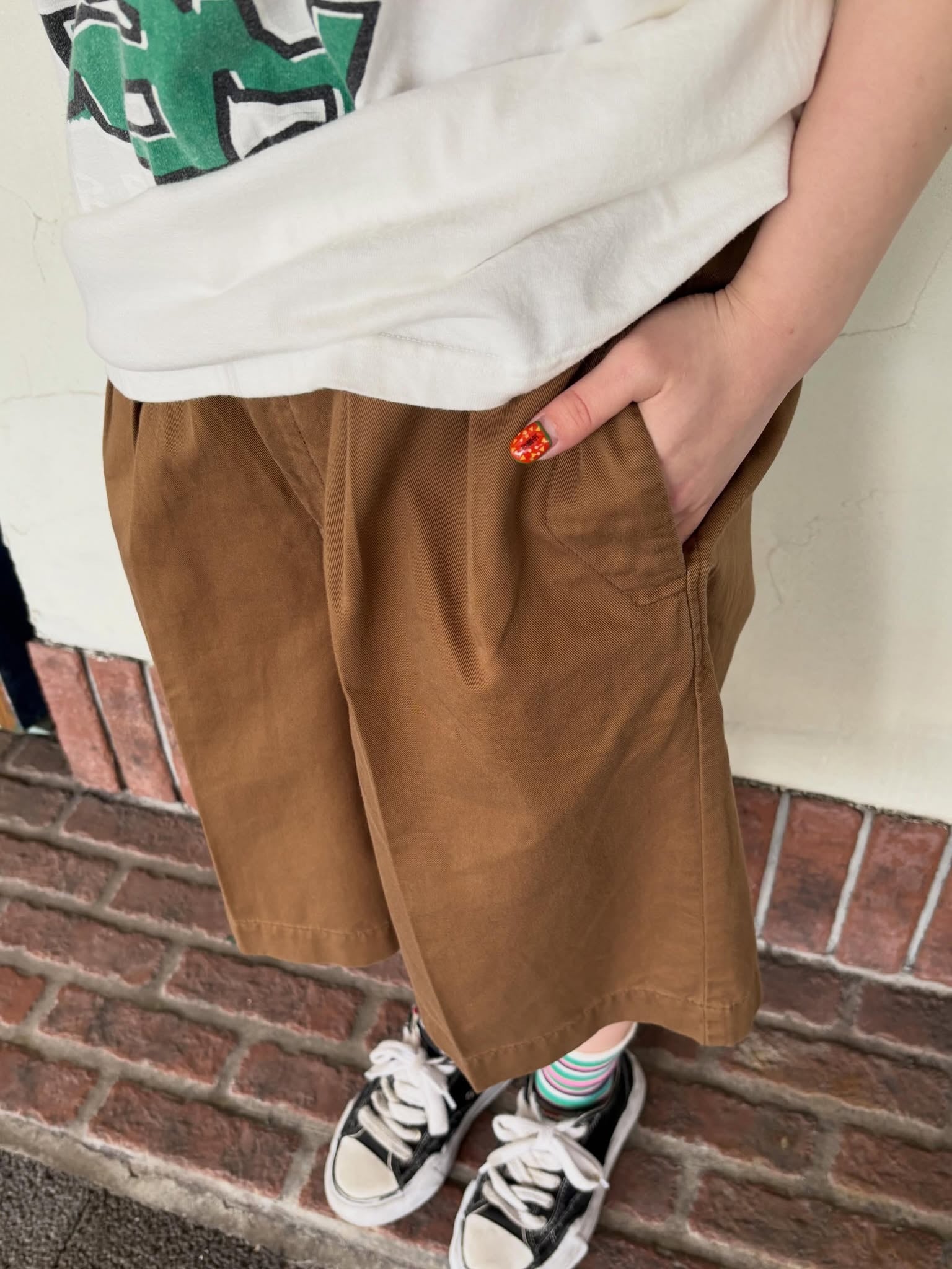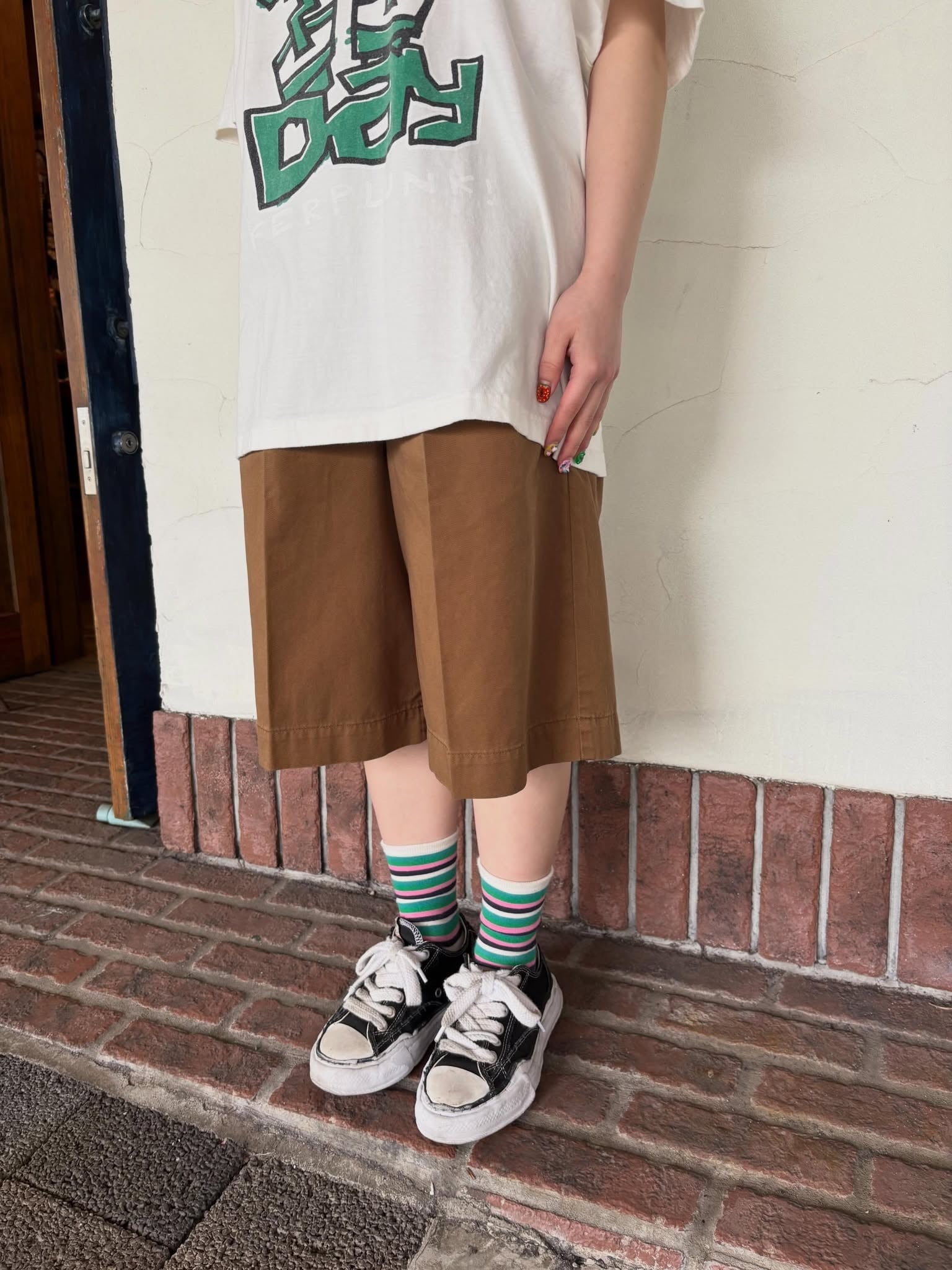 膝が隠れるくらいの安心感のある丈感で、ショーツが苦手な方にも取り入れやすいシルエット。